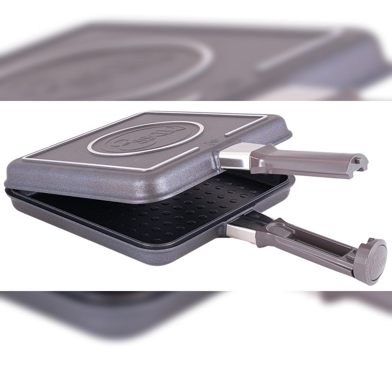 Además, posee un mango con cierre traba dial, que logra un cierre seguro y permite realizar un giro “flip” firme. La innovación en su sistema de bisagras, permite una mayor facilidad en el desmolde y la limpieza.